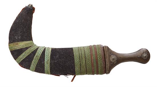 With a leather and canvas scabbard and rope twist decoration, 32cm long.
