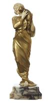 AFFORTUNATO GORY, ITALIAN 1895-1925, RARE GILT BRONZE AND IVORY FIGURE HOLDING A CAT, NUMBER 829