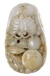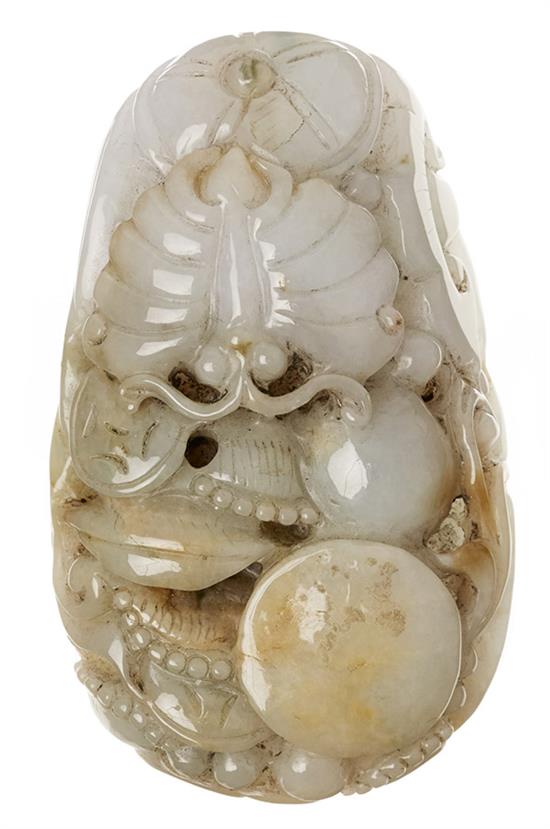 The pebble form carving decorated with butterflies, 9.5cm long.