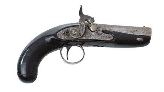 A POCKET PISTOL CONVERTED FROM A FLINT LOCK TO DRUM AND NIPPLE, CIRCA 1790-1840