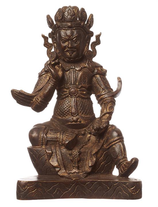 With ferocious expression, wearing a crown and armour, 18cm high.