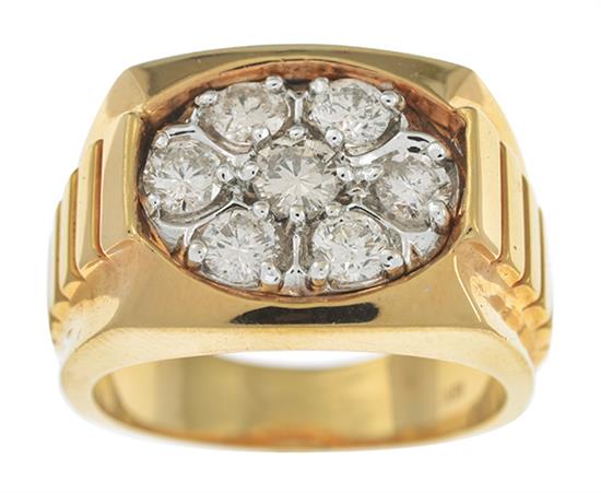 Set with a cluster of seven diamonds totalling 1.12cts, mounted in 18ct gold, ring size Q.