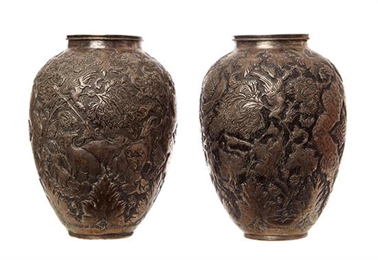 A PAIR OF PERSIAN REPOUSSE VASES, ISFAHAN CIRCA 1900