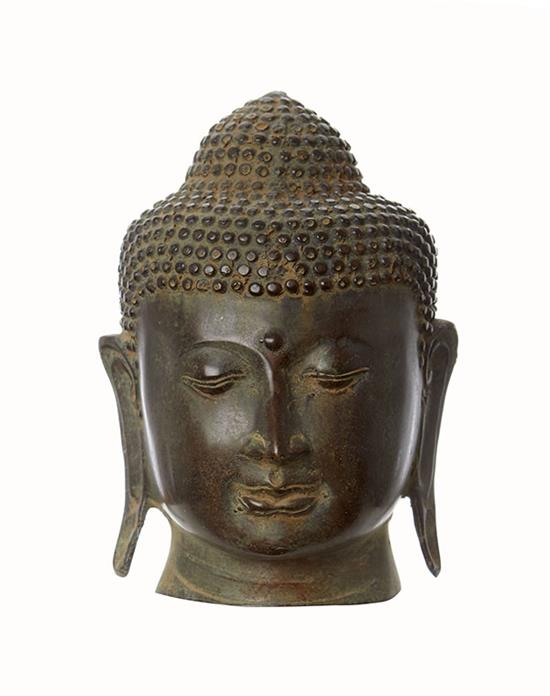 A CAST BRONZE BUDDHA HEAD, IN THE CHIANGSANG MANNER BUT 20TH CENTURY