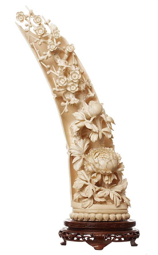 A CHINESE CARVED IVORY TUSK, CIRCA 1900