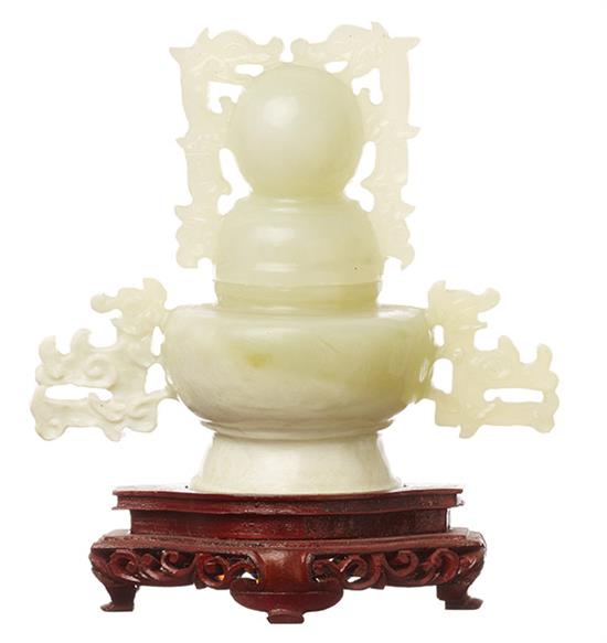 Intricately carved white jade, with hornless dragon handles and lid, 12cm high.