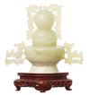 A WHITE JADE CENSER WITH WOODEN STAND