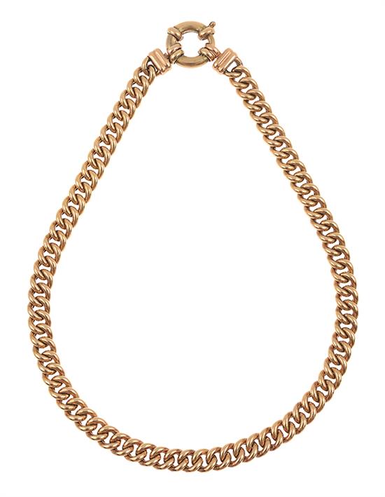 The hollow curb link necklace with oversized bolt ring clasp in 9ct gold, total length 440mm.