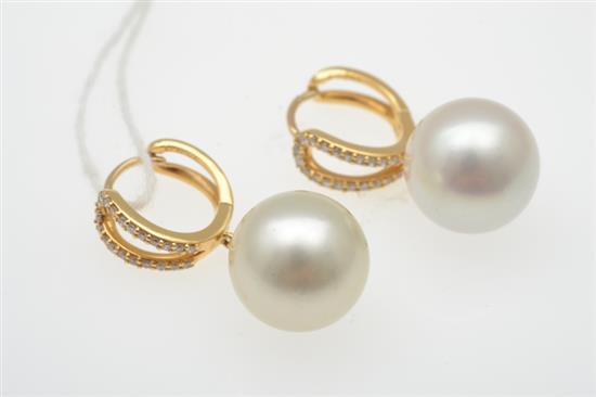 A PAIR OF SOUTH SEA PEARL AND DIAMOND EARRINGS