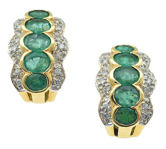 A PAIR OF EMERALD AND DIAMOND EARRINGS