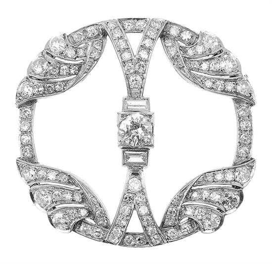 The circular pierced panel centrally set with an old European cut diamond of 0.60cts, set throughout with ninety six further diamonds, mounted in 18ct white gold and platinum.