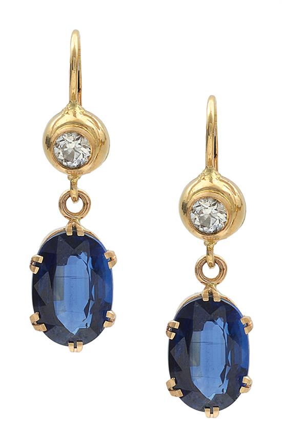 A PAIR OF KYANITE AND DIAMOND DROP EARRINGS