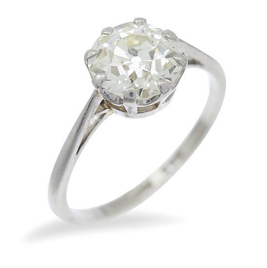 The old European cut diamond of 2.35cts in eight claw setting, mounted in platinum, ring size N.