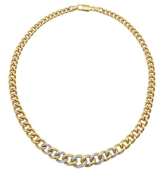 The graduated curb link chain having five diamond set links, mounted in 9ct gold, total length 440mm.
