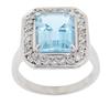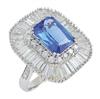 Centrally set with an emerald cut sapphire of 4.57cts, surrounded by round brilliant and baguette cut diamonds totalling 3.21cts, mounted in 18ct white gold, ring size M.
