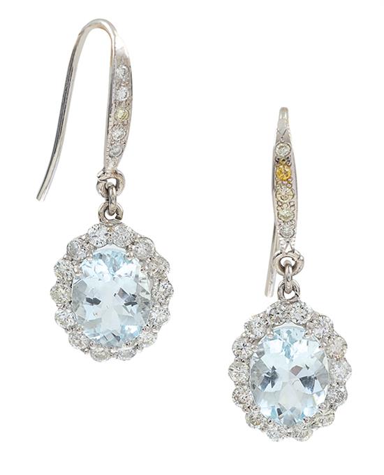 A PAIR OF AQUAMARINE AND DIAMOND EARRINGS