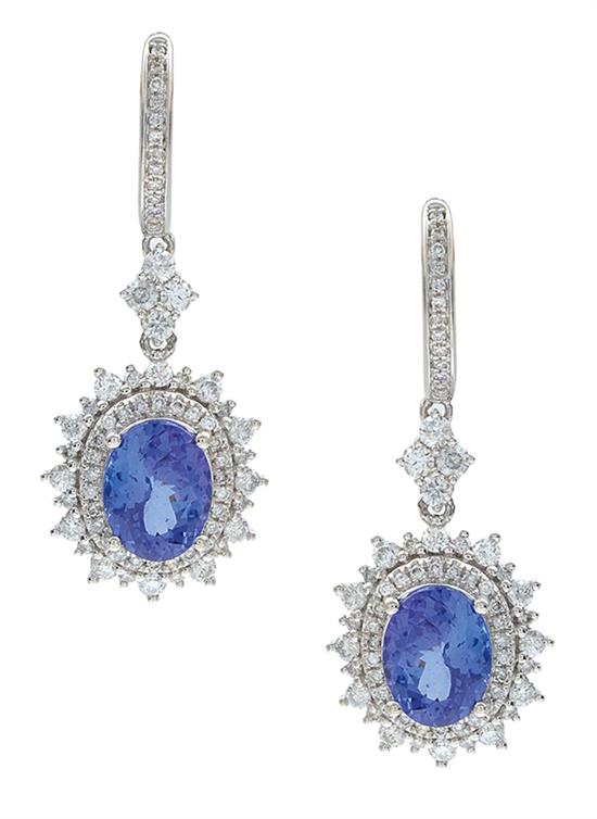 A PAIR OF TANZANITE AND DIAMOND EARRINGS