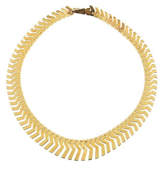 The graduated geometric fringed collar crafted in 18ct gold, total length 420mm.