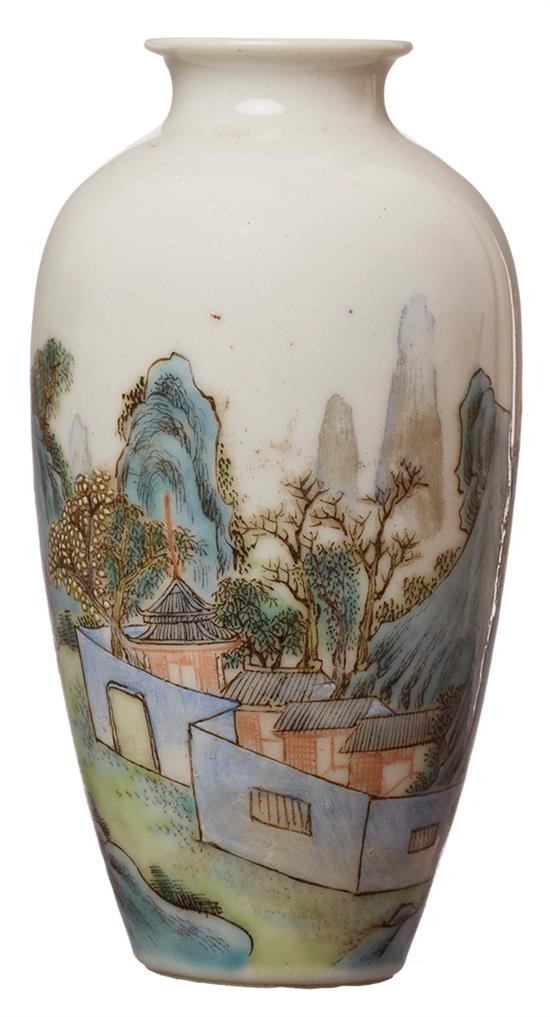Of small proportions decorated with expansive landscape including mountains and trees, showing an Imperial demeanor, Qianlong four-character mark, 13cm high.