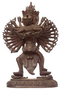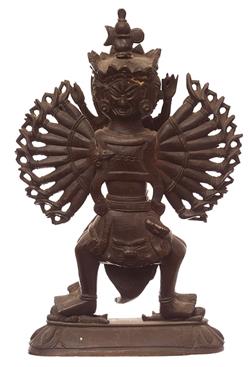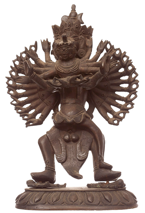 Wearing a crown and standing on a lotus seat, fifteen pairs of arms are opened to embrace a woman, symbolizing joy, 26.5cm high.