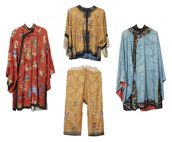 Comprising two robes, a jacket and a pair of trousers, with gold threads and blossom embroidery (4).