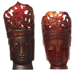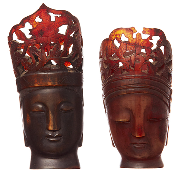 TWO 19TH CENTURY CARVED HORN BUDDHA HEADS