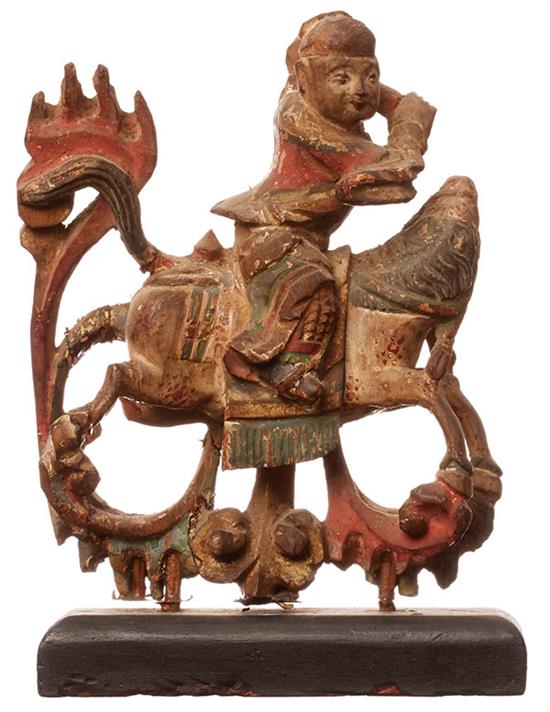 The wood carving of a boy riding on the Ruishou surrounded by clouds, 16cm high.