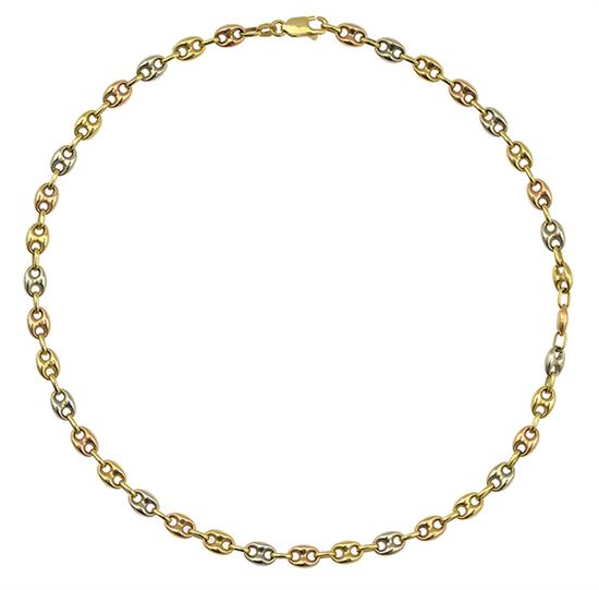 The anchor link chain in 18ct tri coloured gold, total length 400mm.