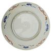 Painted in typical palette, with blue painted motifs verso, restored, 37cm diameter.
