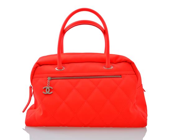 Styled in fluorescent orange canvas with leather handles and silver metal hardware, authenticity card included, 12222432, 41 x 25 x 23cm, with box.