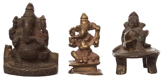 THREE INDIAN BRONZE FIGURES OF GANESH, 18TH CENTURY AND LATER