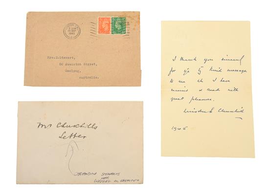 A FACSIMILE LETTER FROM SIR WINSTON CHURCHILL, 1945