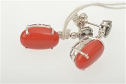 A PAIR OF CORAL AND DIAMOND EARRINGS