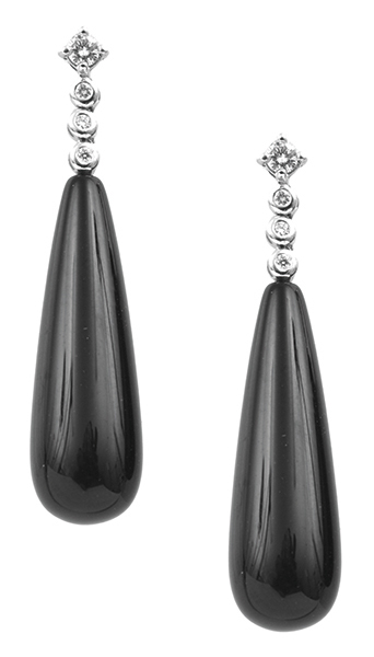 The elongated onyx drops each surmounted by a row of four round brilliant cut diamonds, mounted in 18ct white gold.