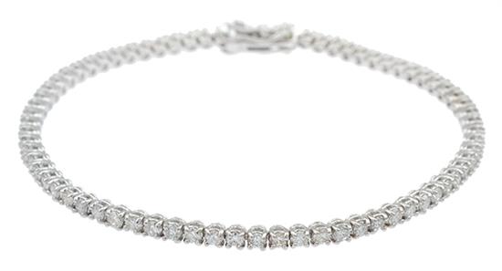 Comprising seventy two round brilliant cut diamonds totalling 2.88cts, mounted in 18ct white gold, total length 180mm.
