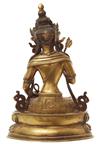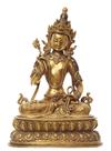 A GILT BRONZE STATUE OF MANJUSHRI INLAID WITH CABERCHON GEMSTONES