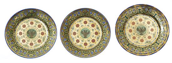 A SET OF THREE RUSSIAN IMPERIAL PORCELAIN FACTORY PLATES FROM THE KREMLIN SERVICE, PERIOD OF NICHOLAS I (1825-1855)