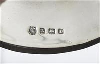 Of faceted tapered form, the domed-hinged cover with bell finial, both with wood scroll handle and reeded foot, total weight 895 grams, both 18cm high. Together with a silver ink well by Blanckensee and Sons Ltd, Birmingham 1918, weighted, (3).
