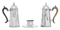 A MATCHED PAIR OF SILVER COFFEE AND CHOCOLATE POTS BY ELKINGTON AND CO, LONDON 1900 AND 1903
