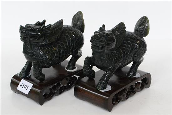 A PAIR OF CHINESE STONE CARVED CHILONG FIGURES ON WOODEN BASES (ONE TAIL REPAIRED)