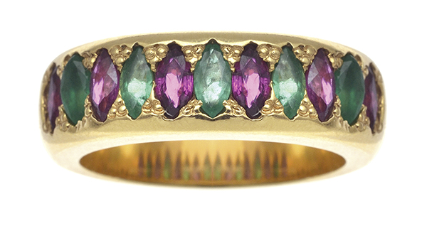 The emerald drops cut en cabochon, totalling 78.85cts, surmounted by a single diamond and diamond set caps, to a cluster of yellow di