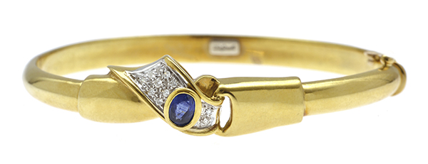A SAPPHIRE AND DIAMOND BANGLE
