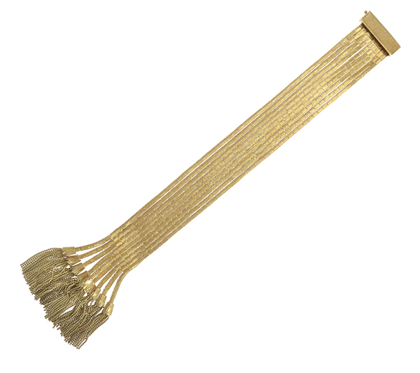 Comprising nine strands of rectangular links in textured finish and tassel terminals, in 18ct gold, total weight 99.5gms, total length 195mm.