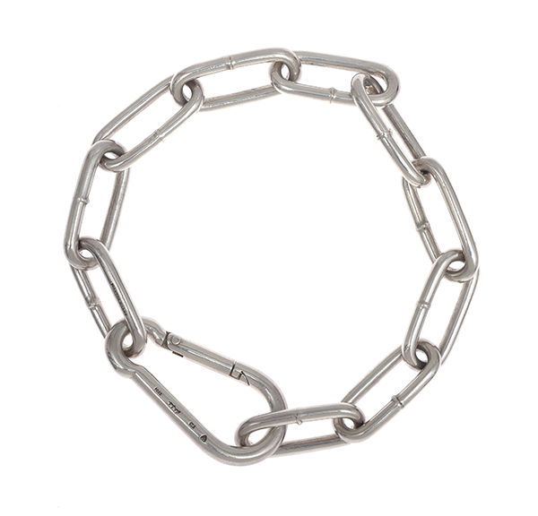 Comprising large oval links to a carabiner clasp, in sterling silver, total length 450mm, boxed.