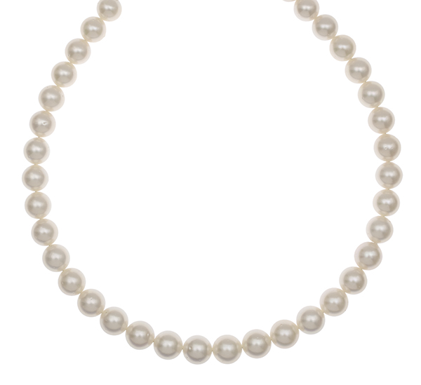 Comprising thirty five round pearls of silver white hues measuring 12.0mm to 13.5mm, to an oval diamond set clasp, in 18ct white gold, total length 460mm.