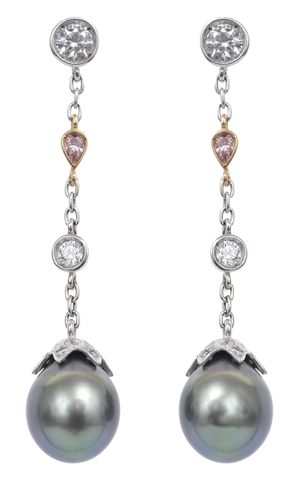 A PAIR OF TAHITIAN PEARL AND PINK DIAMOND EARRINGS