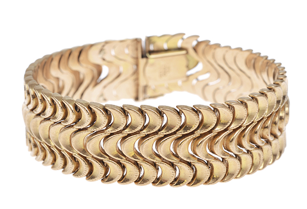 Comprising fancy curved links in textured and polished finish, in 18ct gold, total weight 47.0gms, total length 195mm.