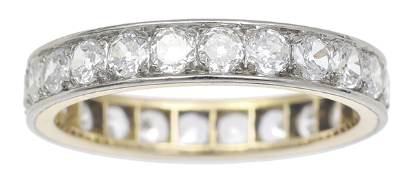 Featuring twenty four old European cut diamonds totalling 1.50cts in two tone 18ct gold, ring size N-O.