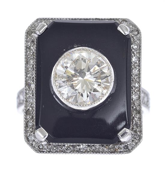 AN ART DECO STYLE DIAMOND AND ONYX RING