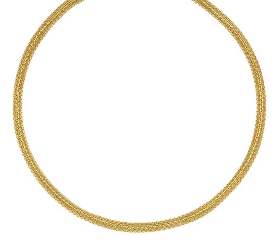 The fancy link chain of tubular design in 22ct gold, total length 415mm.